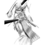 Il n’y a pas d’ouverture du tube digestif ni couture digestive. La fixation du rectum se fait par l’intermédiaire d’une bandelette prothétique, attachée avec des agrafes et des fils.